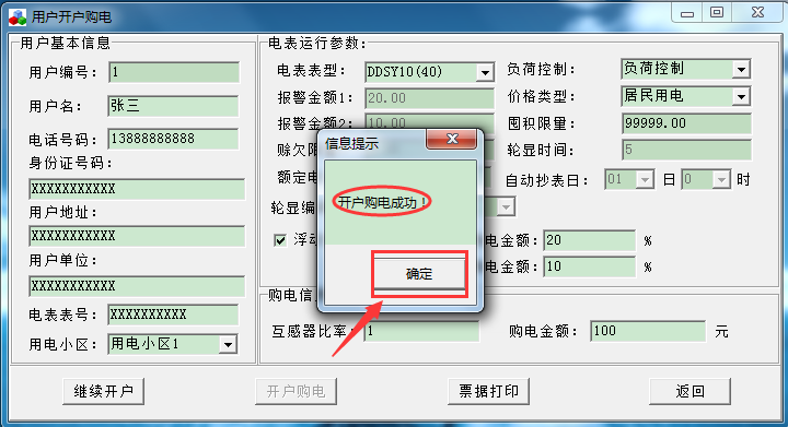 系統(tǒng)提示“開戶購電成功” 單擊“確定”,就開戶完成了。