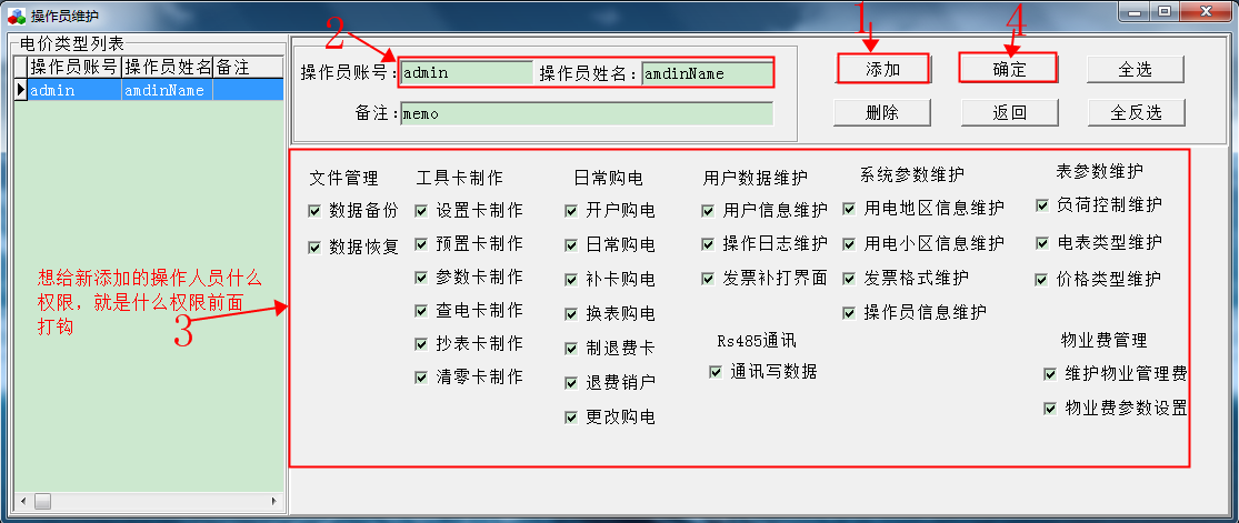備注:新添加的操作人員登錄密碼是00000000,如需更改,需要用該操作人員登錄,進系統(tǒng)更改密碼。