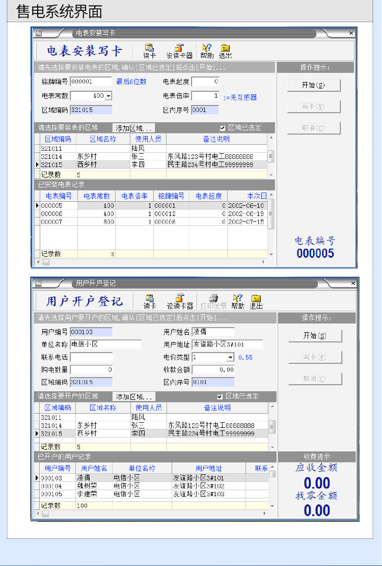 (6)預付費電表的使用流程:1將IC卡插入讀卡器 2輸入要充值的金額 3電影充值發票 4收取費用 5拔出IC卡 6將IC卡插入電表使用,具體操作如下。