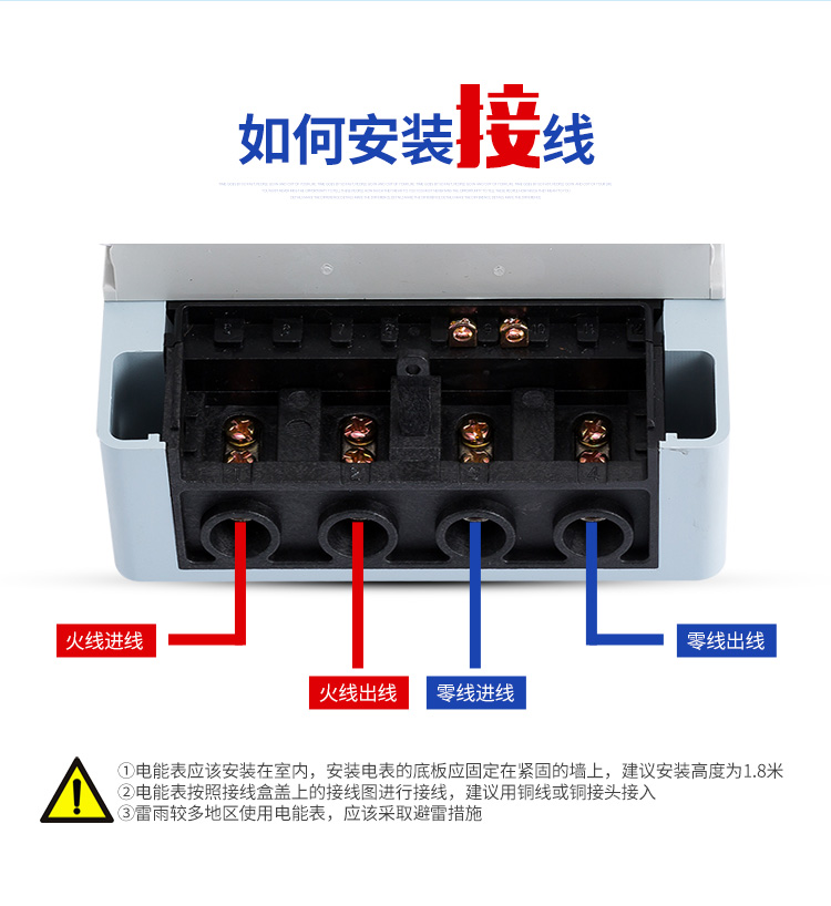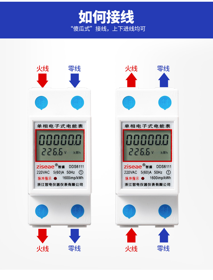 2、采用高品質計度器顯示累計電量(6+1位),顯示清晰鮮艷直讀性好。