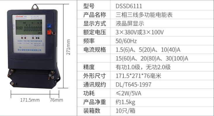DTSD/DSSD6111型電子式三相智能電能表是采用集成電路,應用數字采樣處理技術及SMT工藝,根據工業用戶實際用電狀況所設計、制造的儀表。